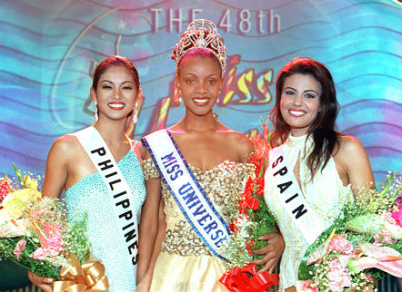 What a pageant! Is all I can say about 1999. A year of wonderful and shocking surprises but overall Trinidad gave a memorable show and graced us with Mpule. Now it's on to Miss Universe 2000 which will likely have the most contestants ever but that title is going to be really appealing! Some countries I would like to see win Miss Universe 2000 are Italy since they are the highest ranking country in the list of the most miss universes without a winner. India since it is the most populated country who participates in the pageant. Philippines since Filipinos are avid pageant fans. Venezuela since they have been stiffed several times over and Osmel is going to bring out the big guns next year as will every country most likely!