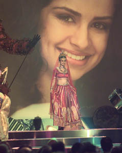 On to the world tour. This was a great idea and I'm glad they continued this competition this year. Miss Spain only showed us how they do ribbon dancing in Taiwan but how could the judges score that? They definitely should have asked her more questions but it didn't matter because her body pulled her into the top 3. Miss Mexico was quite the classic. She was partnered with Miss India but Silvia struggled. First she mixes up the foods. She was supposed to compare roti to a tortilla and curry to the sauce but she accidentally said tortilla was the curry and roti was the sauce (the other way around) WHOOPS!! Just to clarify, when Silvia did her little schpiel in Hindi what she said was, "How are you? My name is Silvia. I'm fine." And the Indians in the crowd cheered but Silvia seemed to have this repelling attitude so it wasn't a surprise that she placed last in this portion. Miss Jamaica was fun. Her little scenario of how she would ask an Italian guy out was cute and she handled her interview very well. Miss Puerto Rico was great. First she comes out and says in a really sexy voice, "Hello, good evening" and she said she would take a coat, ski, and a big bag to fill with chocolate if she went to Switzerland. The big bag was funny. She also proved that she's her own woman with standards and even if it was okay to kiss on the first date in Switzerland, she will never do such a thing and will only consider it for the next date given that she receives a big bag of chocolate. I liked this interview. Miss Philippines was next and I would have like to hear her sing as Jack seemed to be implying but Guatemalan music is instrumental. I appreciated how she expanded on her answer to teach us that the Marimba is an instrument and a dance. She was just so sweet and she held this interview together very nicely.