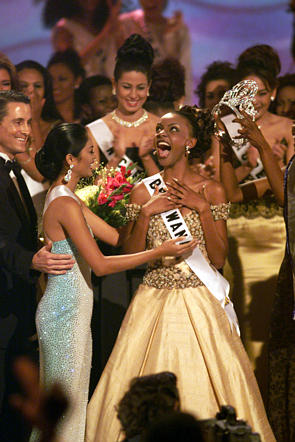 History was definitely made this year! The first black African to win the crown. The first set of "black-to-black" winners. USA didn't make the semifinals, nor did the home town girl, Miss TNT. The most contestants (84) that the Miss Universe pageant has ever had! What a year!