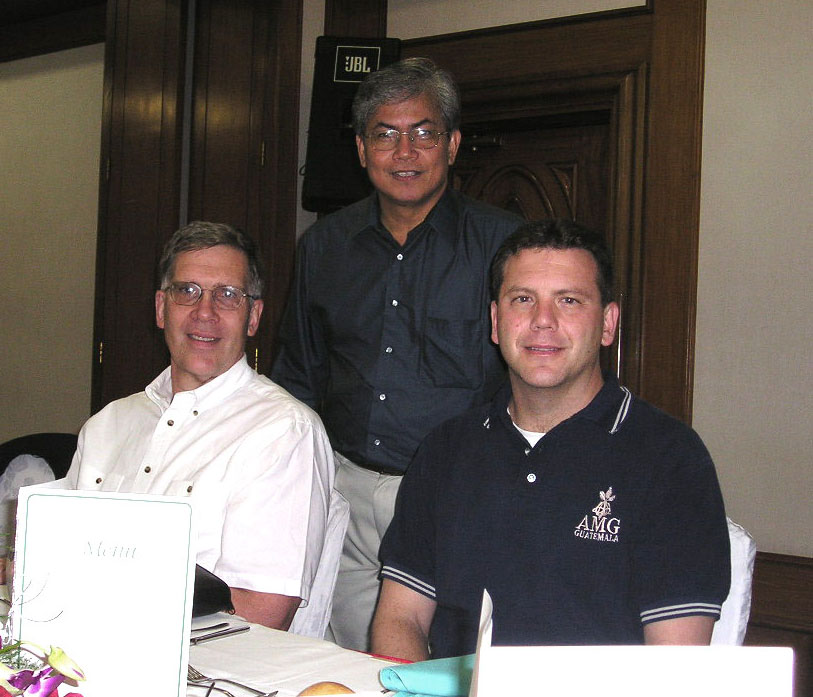 Tom (C) with Paul Jenks (L), Executive Director of AMG International, and Pat Ragan (R) of the AMG Missions Department, during their visit to Manila to meet with the Board of Directors of AMG-Philippines.