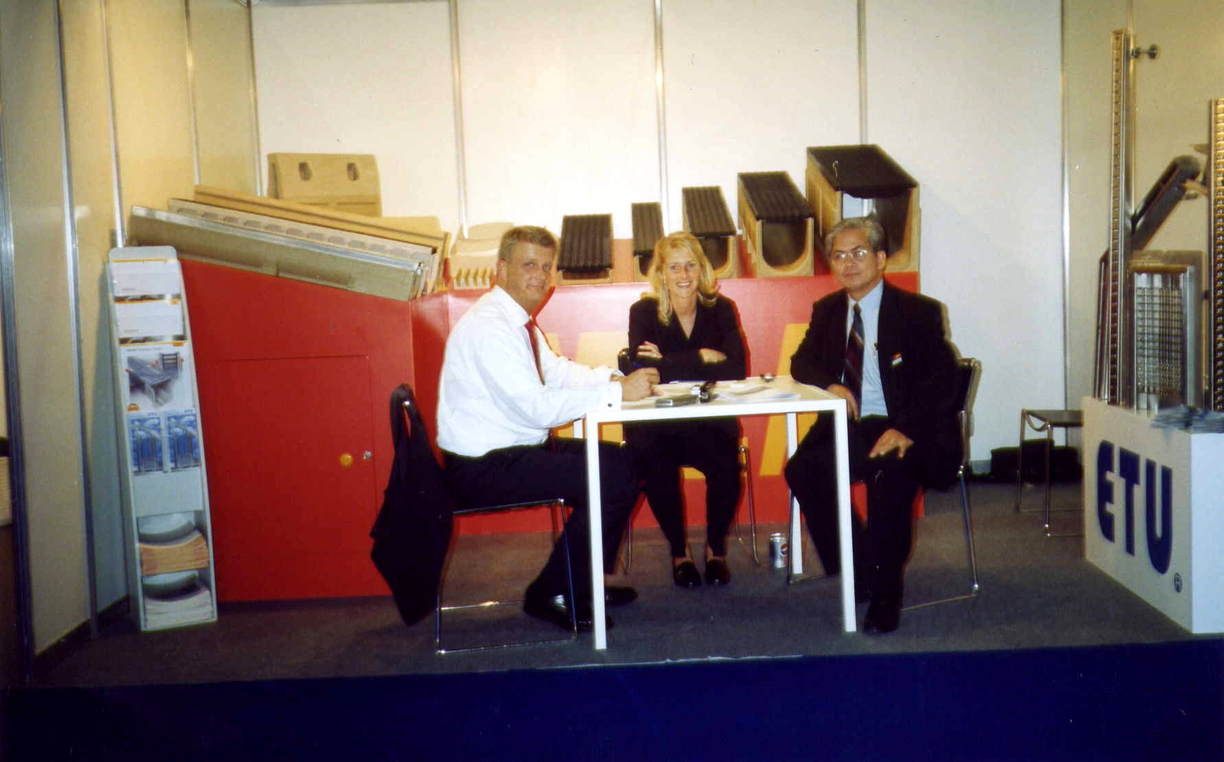 Tom (rightmost), with Joachim Kaden and Natasha Grob of MEA (Netherlands), at the BIG FIVE Construction Trade Show at the Dubai World Trade Center, Dubai, United Arab Emirates, Nov. 2003.