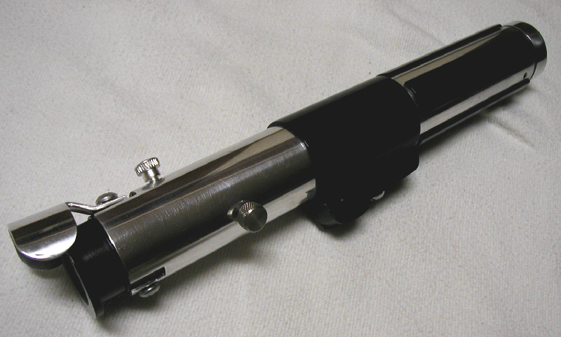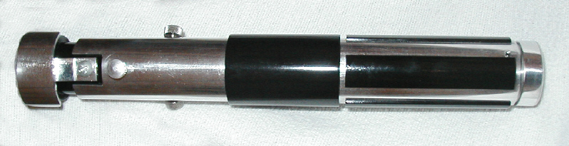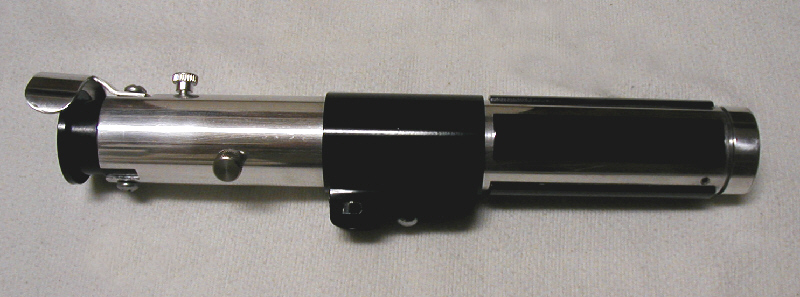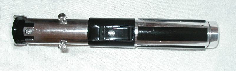 battery compartment door on, and no knurls on the pommel. I just could find a good knurled knob or button big enough to fit it. So I used more slipped aluminum tuning to create it. |