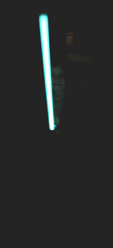 | Also, unlike Yoda's saber, this one has a blue blade. I made it the same as I have all the others, except it is only 24" of lighted blade. Smaller and more easily managed by a less than agile 4 year-old. These pictures make it look VERY bright, but if you have an Anakin FX, this is substantially dimmer. |