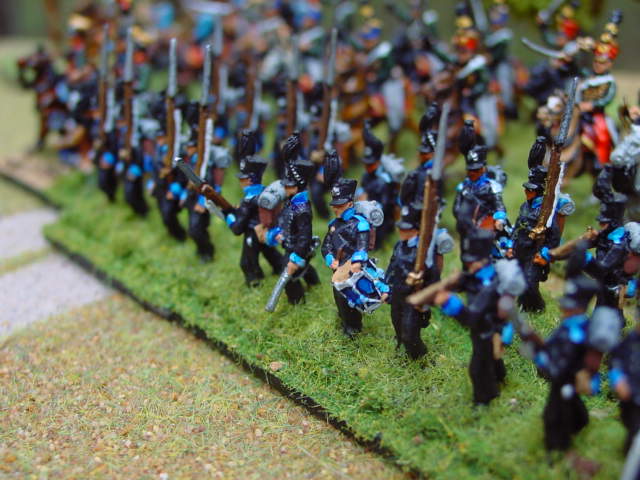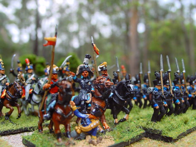 (BELOW) The Duke of Brunswick urges his lads "VORWARTS!", 1809. Austrian Hussars give support.
