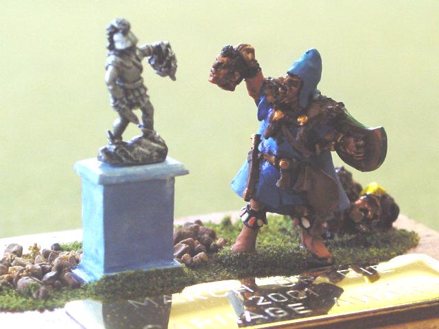 | The "CARNAGE" Award from the "March Or Die" Tournament, 2001. A Thracian warrior Showing a severed Greeks head to a statue of a Greek warrior holding a Thracian's head! "Who'e a dick'ed now; eh Greek?" |
