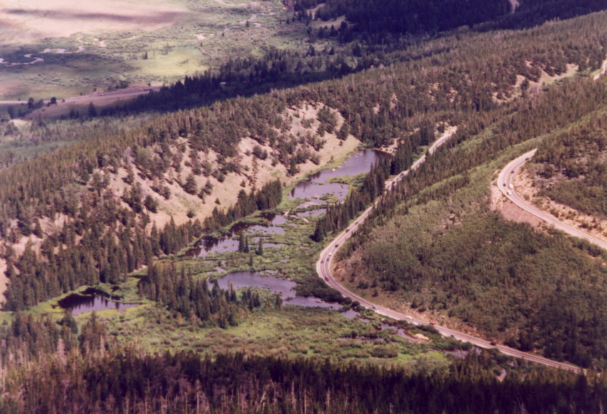 The beaver ponds in Hidden Valley from near Many Parks Curve.