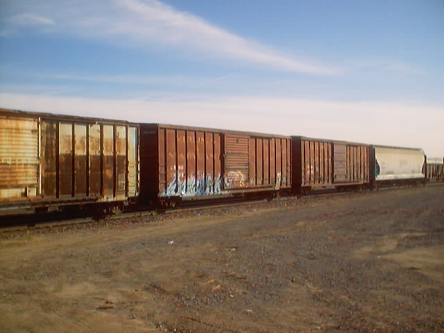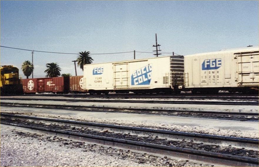 Heres a set of ( SOLID COLD ) Boxcars when i took these photos i had never seen names like these on cars before. photo taken in 1991 at the Needles, Ca. Santa Fe yard