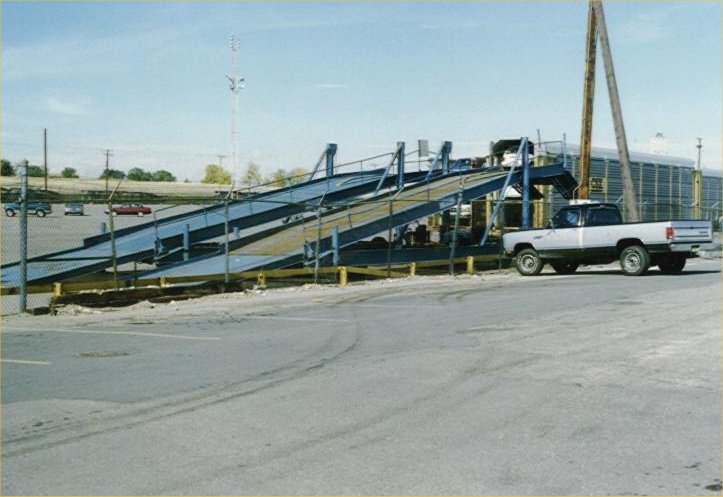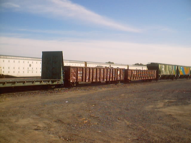 This is a good photo to show just how those new cars are loaded onto autoracks, but i'm sure this system has long since changed by now. Photo taken in Denver, Co. summer 1991