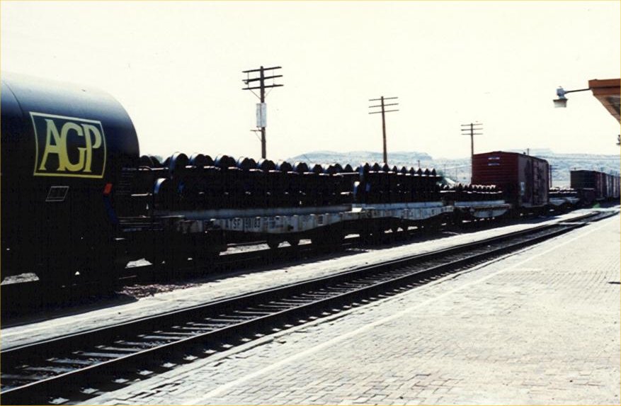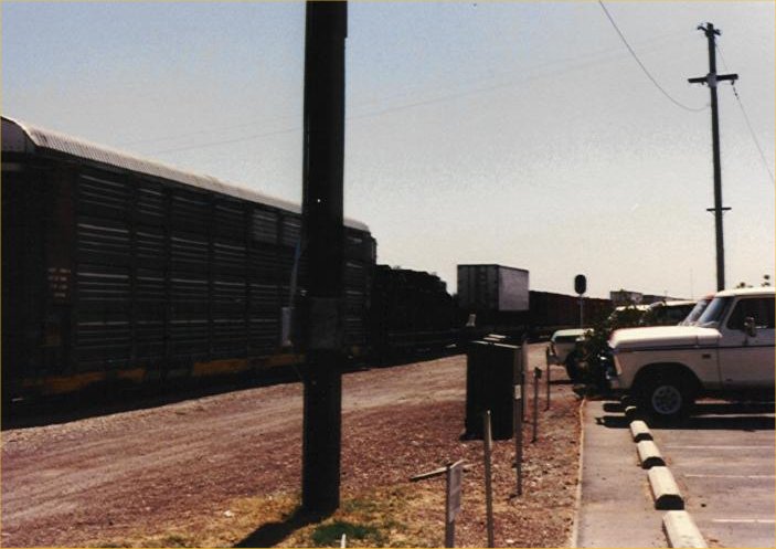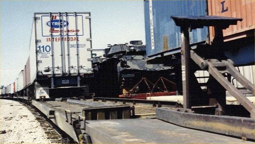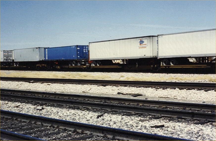 Piggy back cars, Piggy back cars and more Piggy back cars photo taken in 1991 at the Needles, Ca. Santa Fe yard