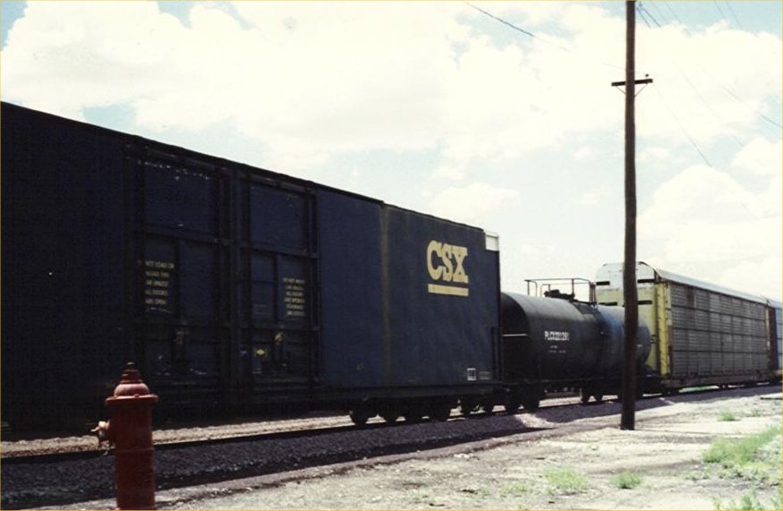 This CSX boxcar got me looking also. At the time i was using these photos as referances to my model railroading i was doing. photo taken in 1991 on the Santa Fe railroad in seligman, Az
