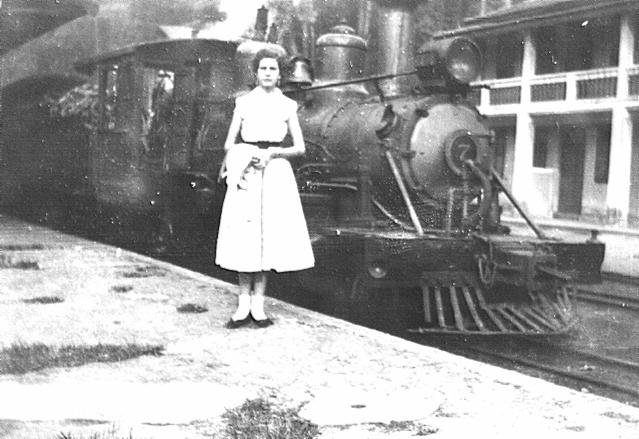| A foto abaixo foi enviado por Tony Belviso e pertence ao seu acervo pessoal, onde ele diz que a moça da foto é a esposa de um grande amigo seu e o passeio preferido do casal era ir ao Horto Florestal de trem nos finais de semana, o que mais uma vez revela o caráter pitoresco e local da ferrovia como opção de lazer para a população. A locomotiva é a nrº 7. | |