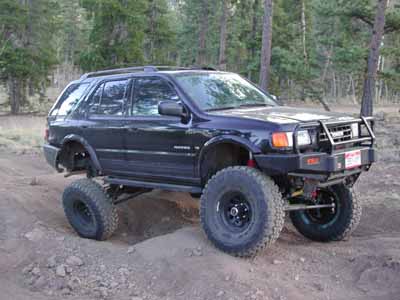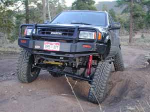 This picture is one which was taken on the start of Slaughter House. It really shows the extreem travel of the rear axle with the SAS. |