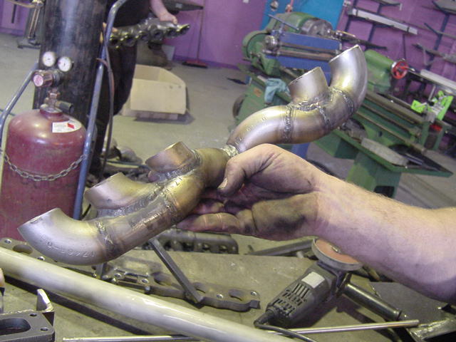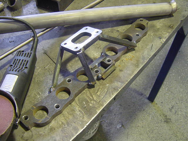 | This is where the turbo is to be mounted on, and the manifold nearly finished. |