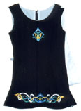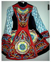 Once a dancer reaches the Open/Prizewinner level of competition (see Feiseanna-->Feis Levels for more information.) she can purchase a solo dress. These dresses have a similar style to school ceili dresses, but the colors and embriodery are unique on each one. Some dancers have a dress made specifically for them, while