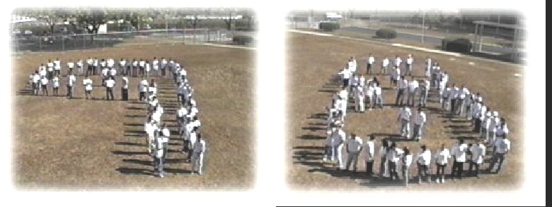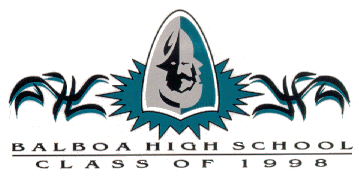 This picture was taken on March 31, 1998, on the front lawn of the school. There was supposed to be a concrete path and a Balboa's statue in the middle of the picture, but I think the person who took the picture intended to eliminate it. All seniors in their new senior T shirts then lined up and formed in the shape of the number. Guess where I am?
