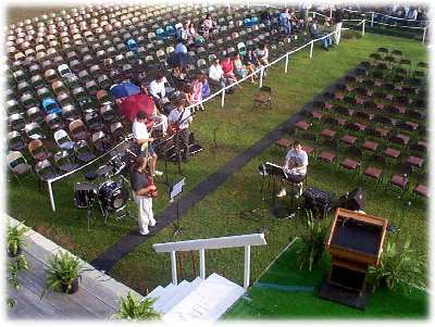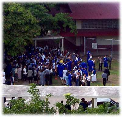 The band seen on the picture consisted Mr. Seitz, Mr. Bales(?), and mrwho. The band did a terrific job on its performance during the graduation.