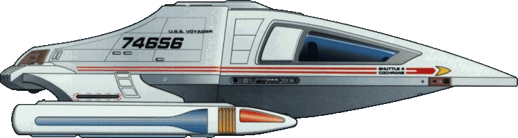 | Shuttlepod Type 18 - A small craft used for transporting no more then 4 people at a time. Usually used for transporting fragile materials. Shuttlepods of note: NCC - 74205 Shuttle Type 6 - Common shuttlecraft of the early-to mid 24th century. Shuttlecraft of note: NCC-1701-D/03 - Justman NCC-1701-D/05 - Curie NCC-1701-D/07 - Galileo NCC-1701-D/09 - Fermi NCC-1701-D/12 - Goddard NCC-1701-D/15 - Magellan NCC-74656/01 - Drake NCC-74656/06 - Sacajawea Shuttle Type 6A - Replacment for the aging type 6. 6A has more maneuverabilty and a much more advanced computer. NCC-1701-D/15 - Hawking Shuttle Type 7 - Common shuttlecraft of the mid 24th century aboard starships. Shuttlecraft of note: NCC-1701-D/01 - Sakharov NCC-1701-D/05 - Hawking NCC-1701-D/06 - Feynman NCC-1701-D/13 - Justman NCC-67016/07 - Kotoi Shuttle Type 8 - Common shuttlecraft for the late 24th century though not very maneuverable. NCC-74656/01 - Tereshkova Shuttle Type 9 - Very small, maneuverable shuttlecraft, designed for speed. NCC-74656/04 - Cochrane Shuttle Type 10 - Small shuttlecraft typically used to land safely on a hazordous planetary surface. NCC - 74205/01 - Chaffee Shuttle Type 11 - New class of shuttle. Highly advanced sytems, docking clamps, transporter, high warp capability, able to land on surfaces and very maneuverable. Similar to the Danube class Runabouts. Delta Flyer - Small ship capable of numerous scientific tasks. Armed with borg weaponry. Designed by Tom Paris. |