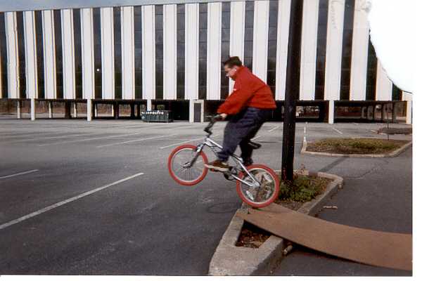 | This pic was shot right after the owners of the shop where we took the plywood pulled up. They just looked at us and said to be careful. That's pretty cool. Boost by me, the flying ball of blackness. |