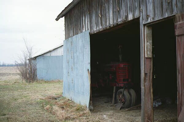 The tractor hiding in the barn there, is also ours. It's a 1948 Farmall M. The motor isn't stuck, but it doesn't run. It also needs 2 front tires and rims. We also have an old Farmall F14. But that is in the back of the far shed. I have no clue what it would take to make that run. I do know that the radiator is rusted out though.