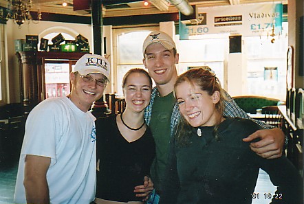 This is in England in a Pub, but of course. These were some of the coolest girls I have ever met! This is Adam, our QMED, and I with the two girls, one was our Bar Maid too!! We had so much fun there that day...... |