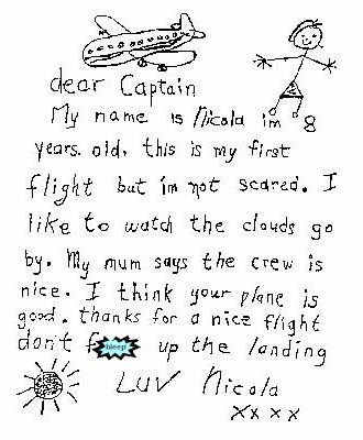 actual drawing handed to a flight attendant a Quantas flight