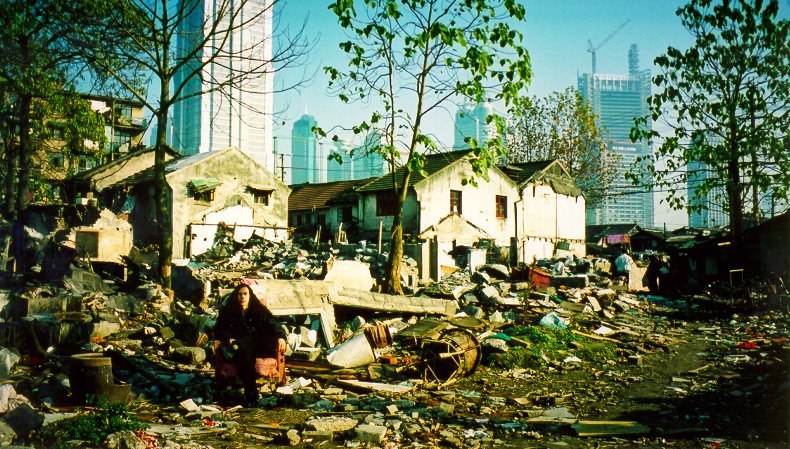 This picture is of a razed neighborhood in Pudong, which is quickly becoming the financial center and skyscraper showcase of mainland China (excluding Hong Kong).