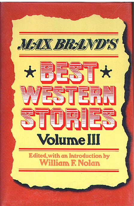 This third "Max Brand" anthology consists of seven Brand short stories. As with the previous two collections Nolan did the "Introduction" and story prefaces. |