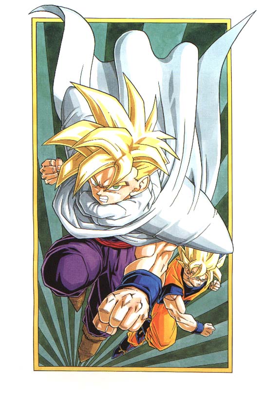 GOKU AND GOHAN DOING A KAMEHAMEHA