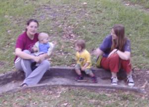 4/18/06: We had a very action packed weekend with my two sisters and 3 kids visiting. Geoff enjoyed playing with the older children and they were very good with him. Most kids are more interested in his bald head than his hearing aids, which is a great relief. We went to Lake Alice, Devil'd Millhopper and the park on 8th Ave and 34th on Saturday. We also decorated sugar cookies and played countless rounds of "hide the eggs" since we only had 8 plastic eggs. The kids all loved it and Geoff enjoyed watching everyone run around.