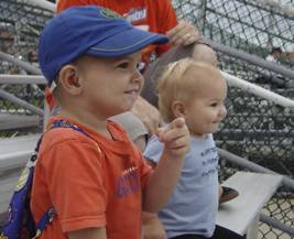 09/05/08: For better or worse, Margot can sign and say Hot Dog... Geoff is doing a lot of cute things. He loves to Joke, especially about food. He'll pretend to feed Phillip some pizza then snatch it back and sign "Joke Dad." We're back to getting speech 5 times a week and that's nice. We are so blessed for him to have access to so many great people that can gauge his progress. Phillip has started classes at UF. Last night he took the kids up to see the Airpot while I was at a church meeting. He's a great dad.
