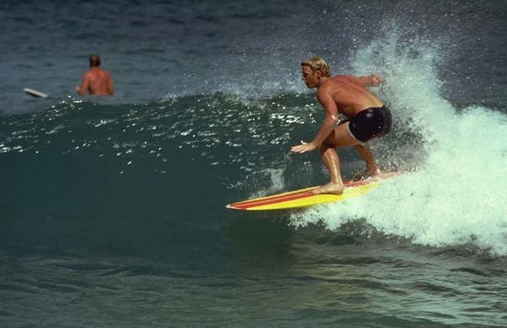 William Katt ducks into a small wave while freesurfing between takes.