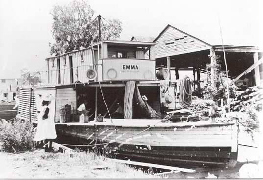 Paddle steamer Emma in dry dock at Mannum, South Australia. 1890s. Emma was built at Echuca, Victoria, in 1885 |