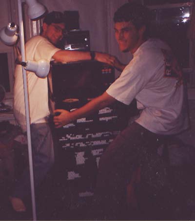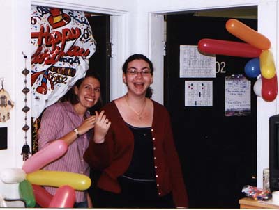 Erika and Lisa having a drink at the Purim party (Spring '01)