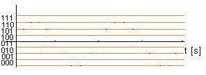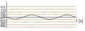 Come si vede il segnale ricostruito è pressochè identico al segnale originale,solo leggermente trslato verso il basso a causa dell'operazione di campionamento. Ora,proviamo a campionare la sinusoide a intervalli di 0.3 secondi;questo significa prelevare solo un campione ogni tre della serie di prima