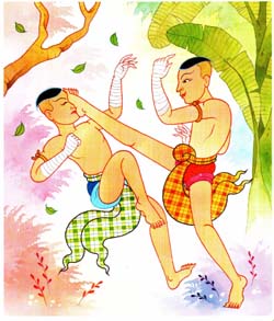 ปิดหมัดของคู่ต่อสู้ รีบเตะสูงที่ปลายคางหรือใช้เท้าถีบใบหน้าคู่ต่อสู้