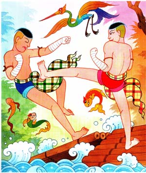 การรับหมัดด้วยการใช้เท้าถีบยันยอดอก หรือท้องของคู่ต่อสู้