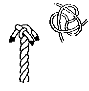 | 簡單而有效的方法令繩端鬆散的小繩收好, 可防止整條繩散開. | 製造一個永久的圈在繩的尾端. |