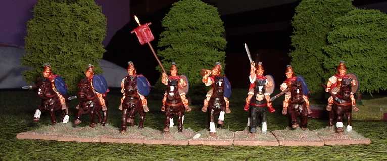 These figures represent the 'Knight class' of my Roman army. Not too hot on the charge, but good to hassle a flank.