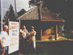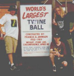 On September 6, 1998, we reprised our amazing journey as we traveled once again to the Twine. It was quite unfortunate that on this trip, Pete was not able to join us. So, we invited Anthony along to substitute. This was no ordinary Twine trip. Dustin and I have met an individual on campus at Northern State University who lives in Litchfield, MN (just a few miles from Darwin!). Jes told us that her father, Art, knew Thea, the caretaker of the Ball. Jes and Art hooked us up to go inside the Pagoda and actually touch the ball as you will see in the below photographs. And of course, this year we brought with us the sacred relics. The same relics as the previous year, in fact. This year we could not find Potato Skins, however we did have Mama's homemade rhubarb pie. We ate it, too. ---Other misc pictures