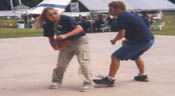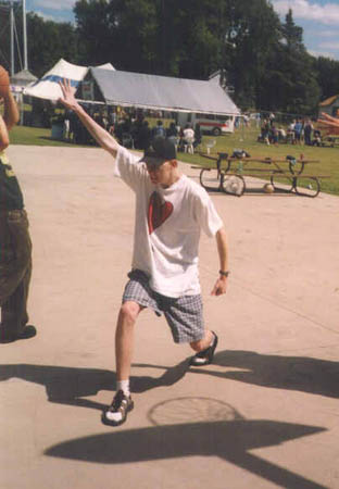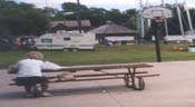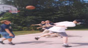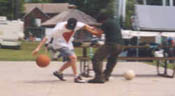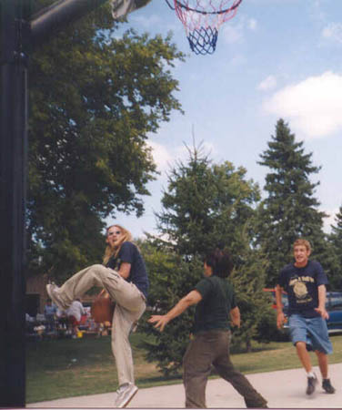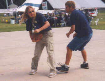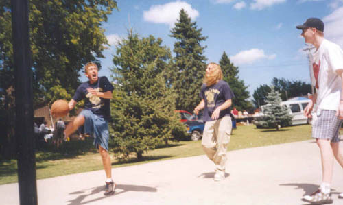 Below are a few photos of what the great game of Left-Handed FreeStyle BasketBall looks like. These photos were taken on Twine Ball Day 99. Click the thumbnail for a full size view.