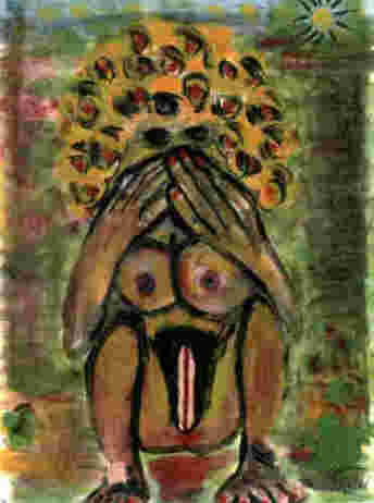 Her name means RED and she represents the blood of the womb and of menstruation.