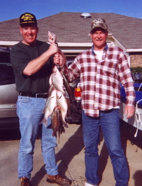| Father-in-law with a nice Crappie from Ray Hubbard caught on a 1/2 ounce spinnerbait. | A good stringer of Sand Bass from Ray Hubbard, with my friend Robert. | ||||||||||||||||||