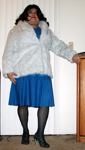 | These were taken on the same night, I managed to borrow a fur coat for the second picture and the first was in the same dress without the coat. Boy was it hot that night. | ||||