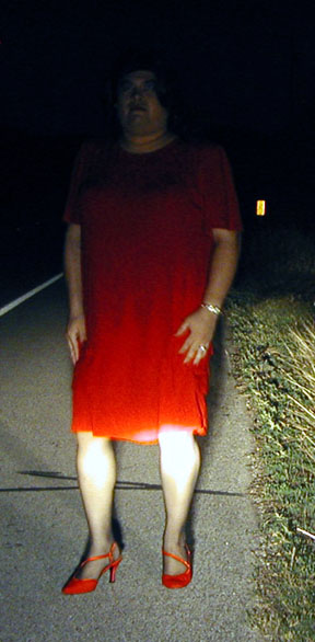 | The pic on the left is one of the very first after Halloween that I took. I was still learning how to do makeup correctly. The pic on the right is a night time shot on the side of the highway. | ||||