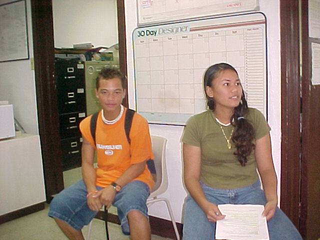 | Eldred and Arlene, chilling out at the UBP-Saipan office before their next class. |
