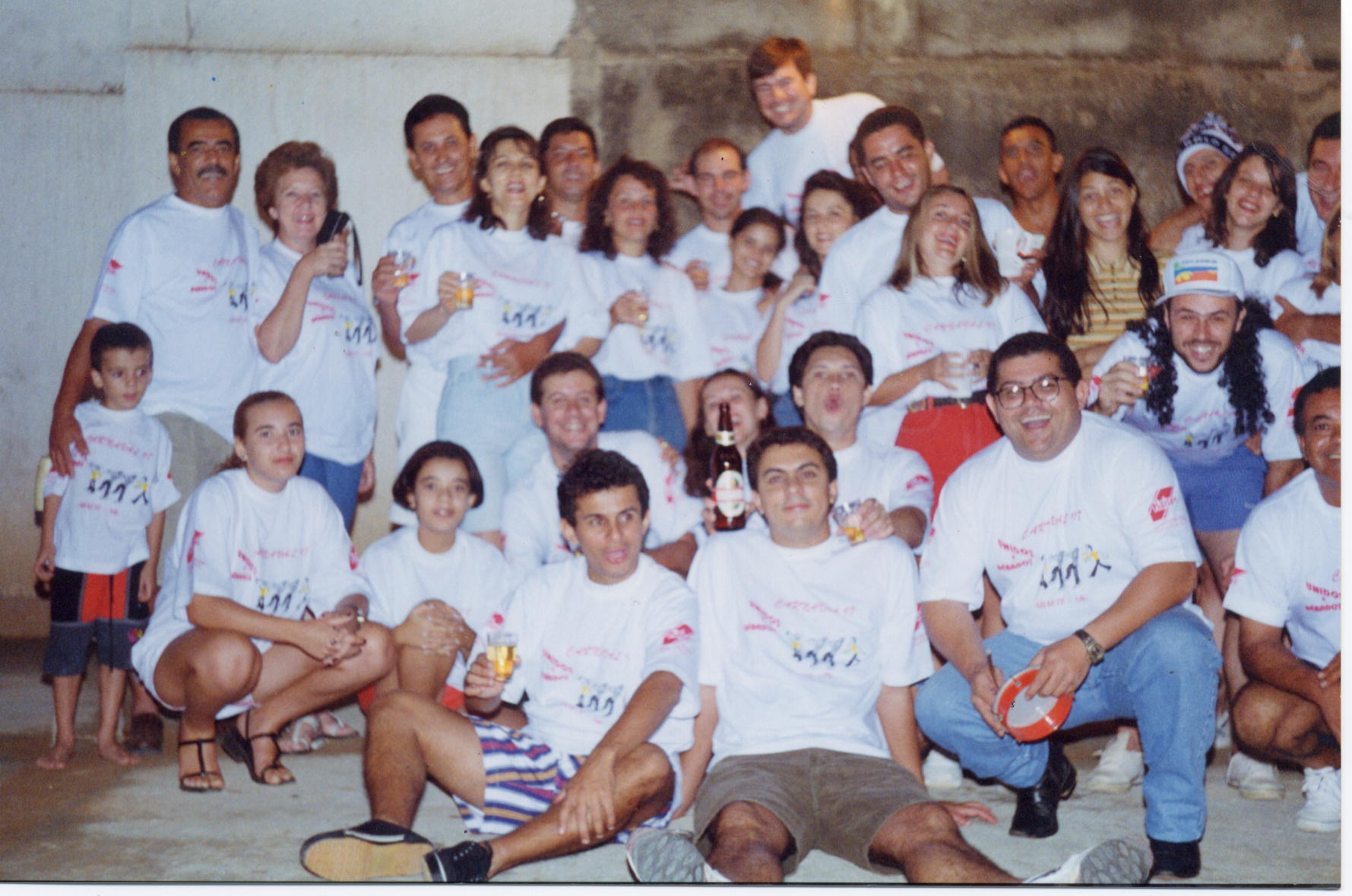 Da esquerda para a direita (agachados): Aline; Erika; Tonho Amarra Gato; Patrícia; Raul; Timboto (Dinho do Zotinho); Digão e Zé Paulo (meia cabeça).