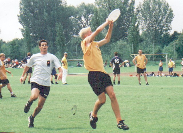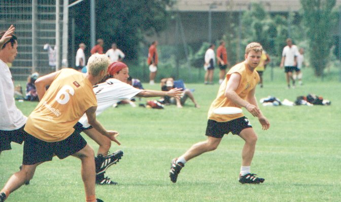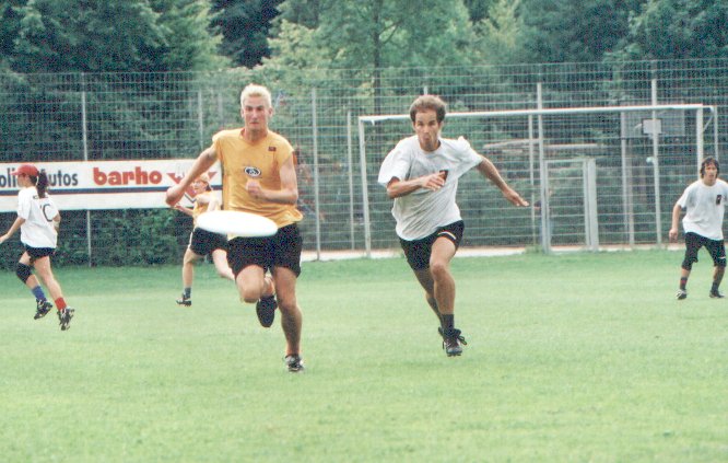 | Here he is chasing the disc against Switzerland in Worlds | |||||||||||||||