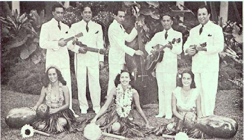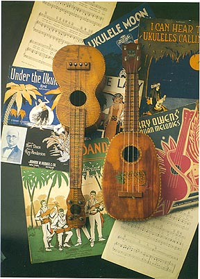 In 1915 the ukulele began it's popularity on the U.S. mainland. That was the year of the Panama-Pacific International Exposition in San Francisco, where Hawaii hosted a pavillion. The exposition celebrated the completion of the Panama Canal and lasted for 7 months. With exhibits from countries all over the world it attracted more then 17 million people, an amazing number considering the population in those days. The Territory of Hawaii viewed it as an important opportunity to promote its products, land, people and tourism, and the legislature appropriated over $100,000 for a Hawaiian Pavilion. The main attraction turned out to be the Hawaiian show featuring hulas and songs which ran many times a day. The music created a sensation, with such great musicians as Jonah Kumalae, the ukulele maker, and the Royal Hawaiian Quartette. Legend has it that the song "On the Beach At Waikiki" was the first big hit. This was the first time that Hawaiian music had been promoted on the U.S. mainland and it soon swept the country.