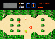 Admittedly, it didn't take much to scare me when I was a child, the only problem is that I tend to remember my childhood in the most painful detail... all these things still haunt me! So, what is Zelda? It's a nightmare I tell you! After wandering around like a schizophrenic headless chicken of a midgetized dumbfuck youngblood for a while without a sword, I got the first impression that this game was unbelievably difficult. Hell, everything seems difficult when you're four, but running into homocidal chandeliers of varying colors without a weapon of mass destruction (a wooden sword that gets an erection when you have full hearts) in your mitts is dangerous shit!
