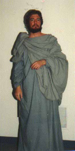 (right)James the Lesser- Identified with James the son of Alpheus.In all the four lists of the Apostles, he stands at the head of the third group (Matt., 10, 3; Mark, 3, 18; Luke, 6, 16; Acts, 1, 13). Of James individually we hear no more until after the Resurrection. St. Paul (I Cor., 15, 5-7) mentions that the Lord appeared to him before the Ascension. James the Less is played by Dr. Steve Pracht who is an original cast member The Pracht family are long time members of the Lindsay UMC. He has a dentist practice in town. |